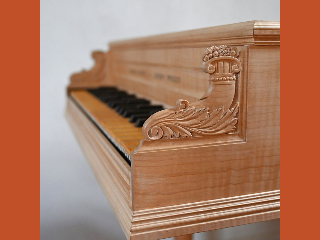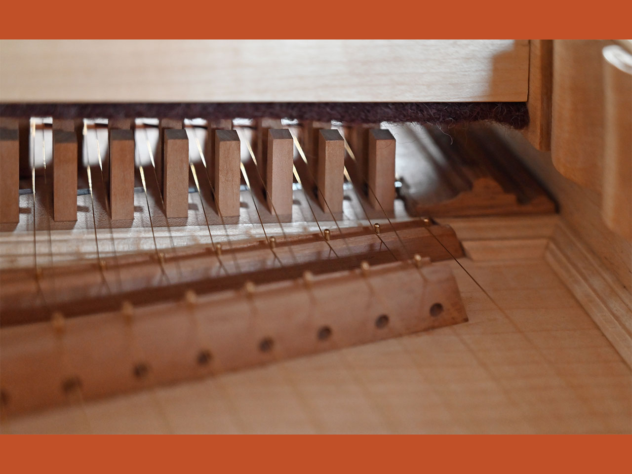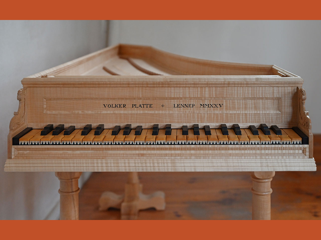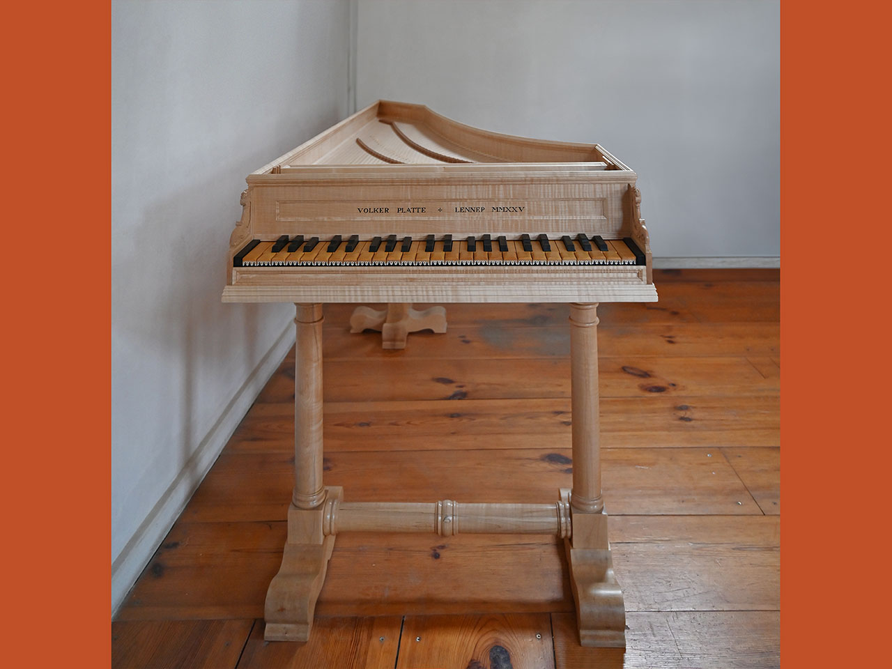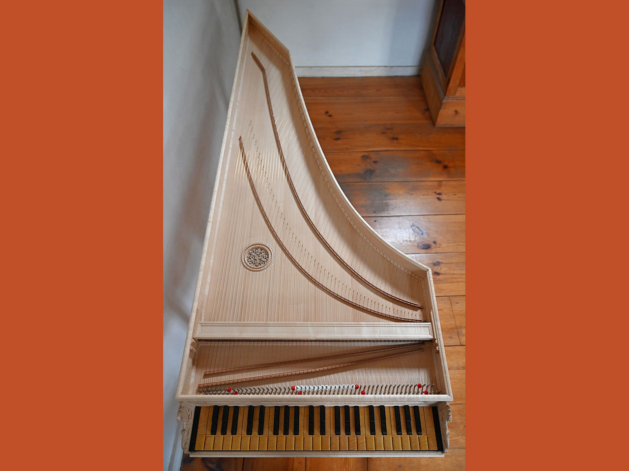 - Italienisches Cembalo der Renaissance nach einem anonymen Vorbild im Germanischen Nationalmuseum Nürnberg, Korpus dünnwandig aus Ahorn mit aufwändigen Profilen, Tonumfang C/E–c“‘, 8′,4′ mit geteilten Obertasten sowie Fis und Gis im Bass, Messingmensur, a’=440 Hz.