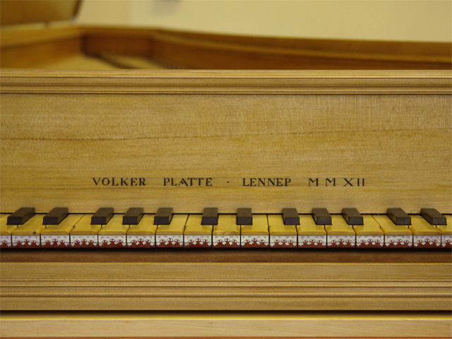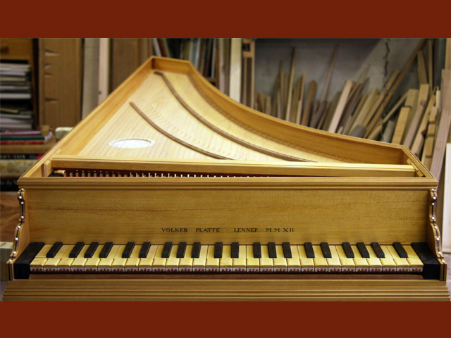 - Cembalo nach Alessandro Trasuntino (1531), dünnwandig im Kasten, mit einem 8′- und einem 4′-Register, Tonumfang nach Kundenwunsch C, D – d“‘, Eisenmensur, doppelte Transponiereinrichtung 415 Hz, 440 Hz, 466 Hz, im Original C/E – f“‘.